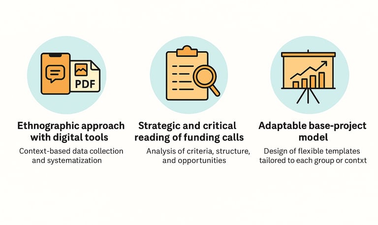 Our training programs in fundraising and project management are designed to strengthen the autonomy and strategic capacity of NGOs, grassroots initiatives, and community-based organizations. Combining ethnographic tools with accessible technologies, we support teams in identifying funding opportunities, understanding grant requirements, and developing adaptable, context-sensitive project proposals. Our methodology promotes a collective and intercultural approach to planning, budgeting, impact assessment, and storytelling—ensuring that each project reflects the realities, values, and priorities of the people it aims to serve. From in-person workshops to long-term mentorship, we offer tailored support to enhance institutional sustainability and amplify the voices of diverse communities in national and international funding landscapes.